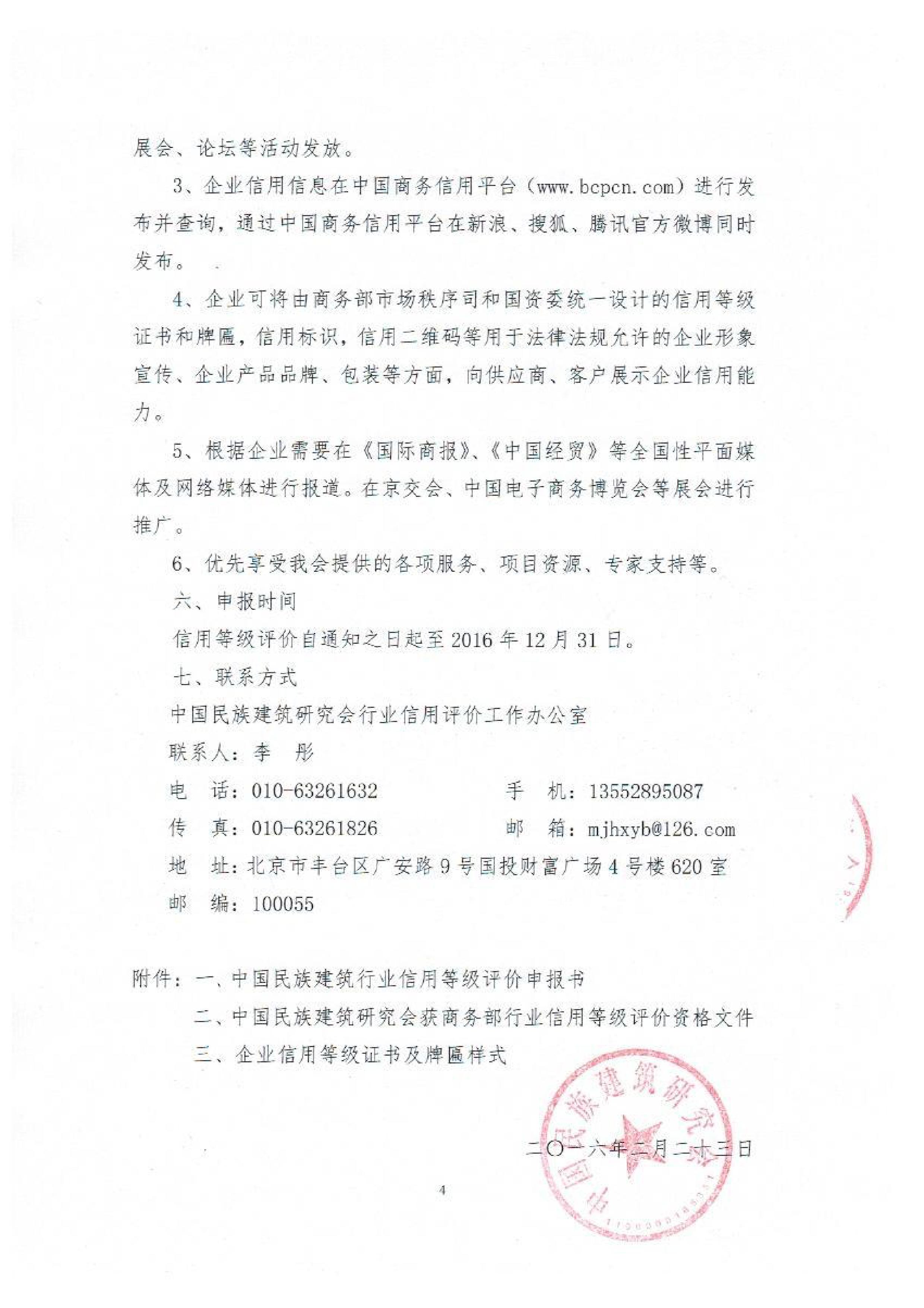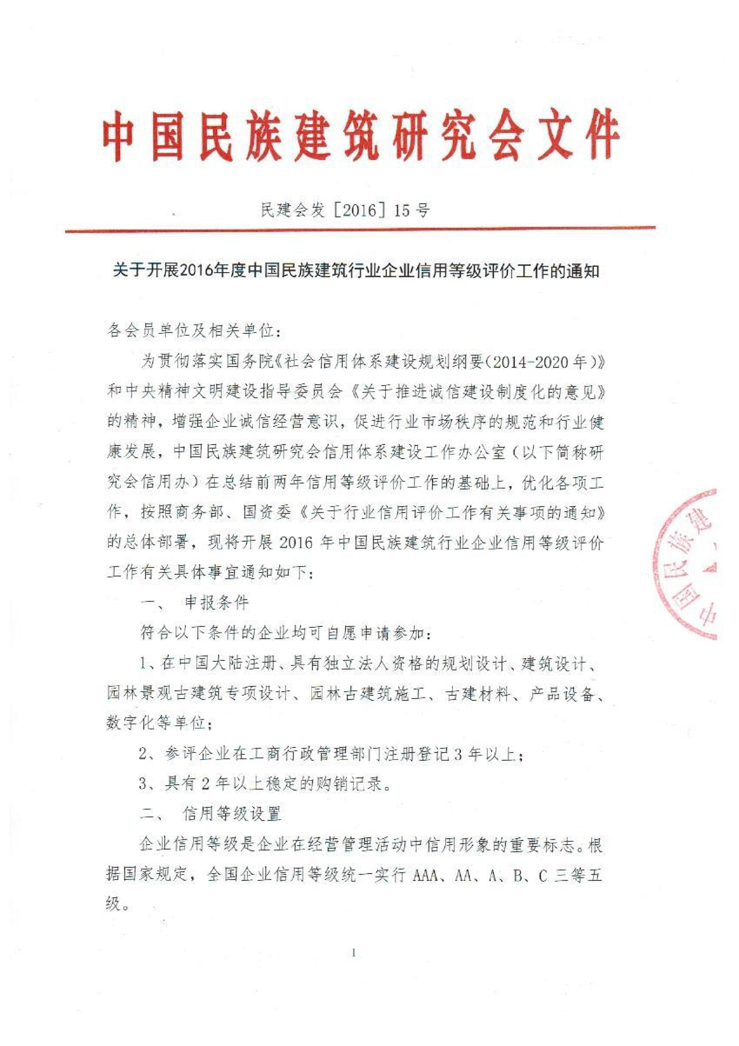 关于2016年度中国民族建筑行业企业信用等级评价工作通知