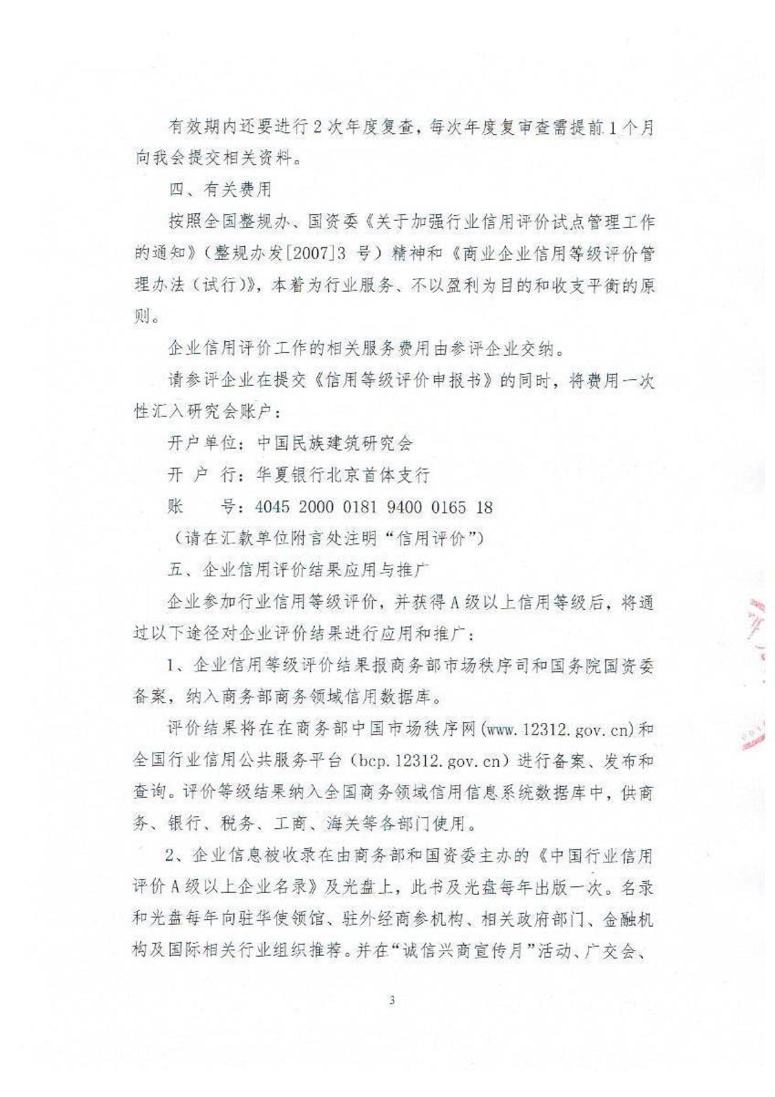附件二:中国民族建筑研究会获商务部行业信用等级评价资格文件