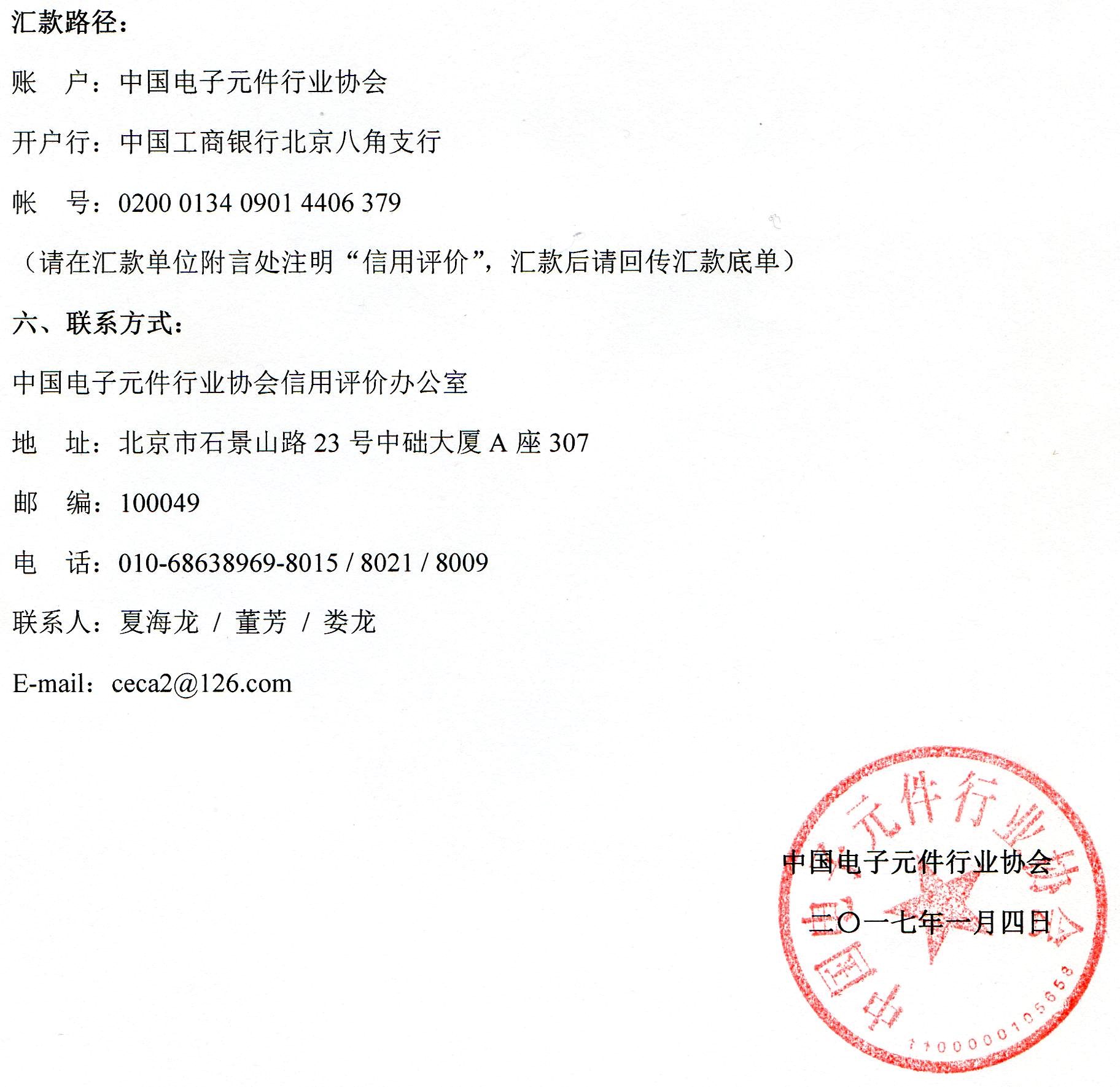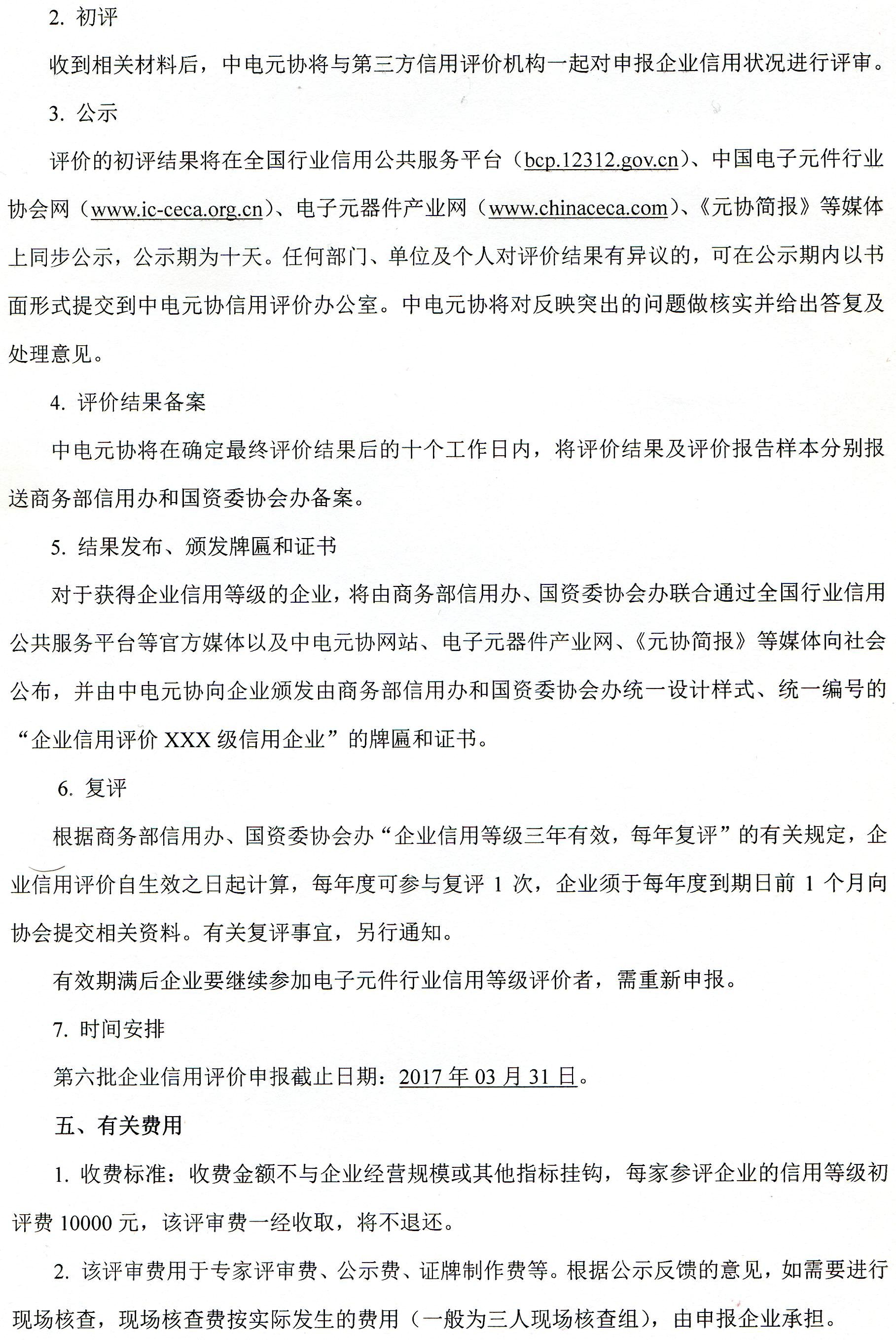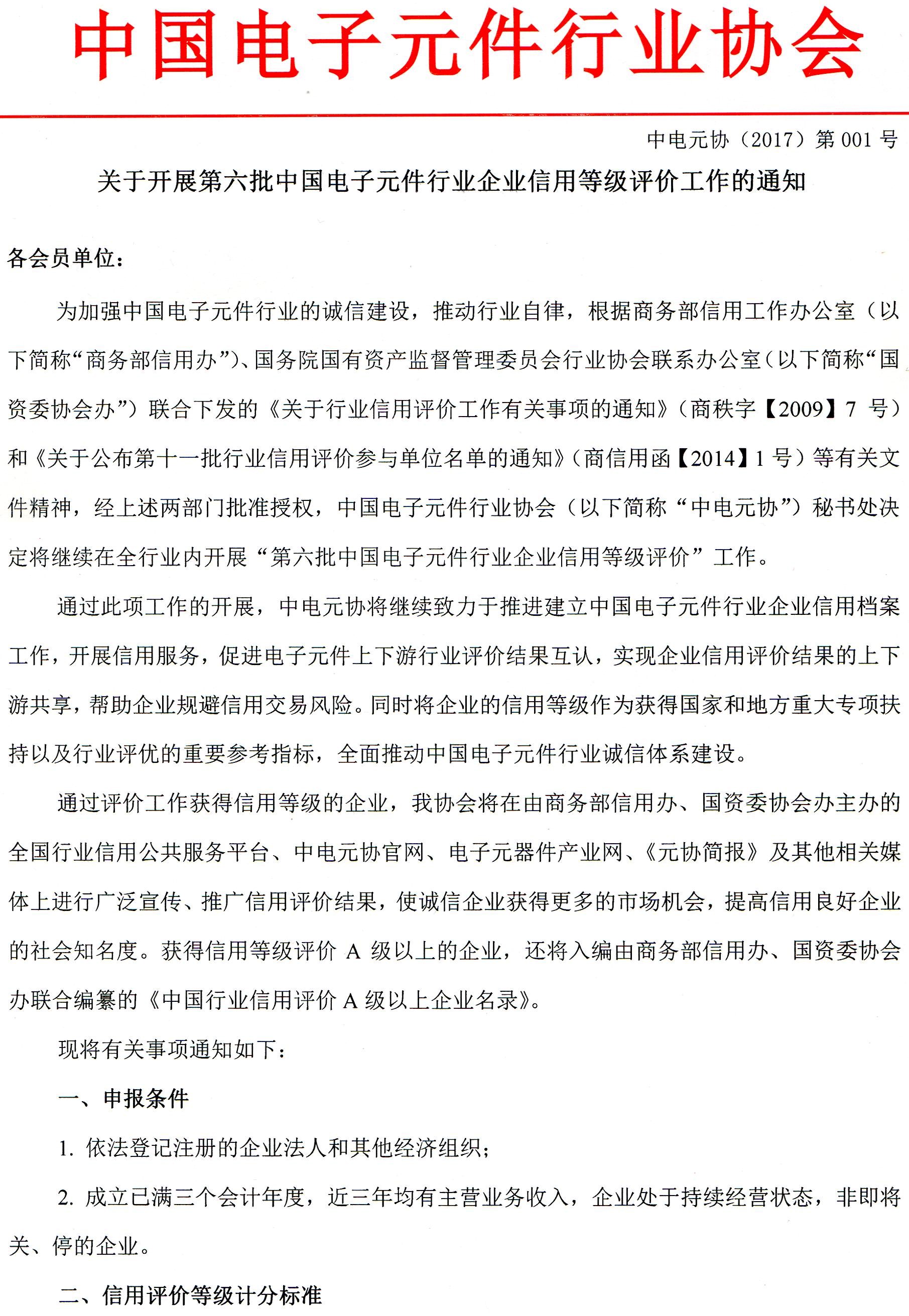 关于开展第六批中国电子元件行业企业信用等级评价工作的通知